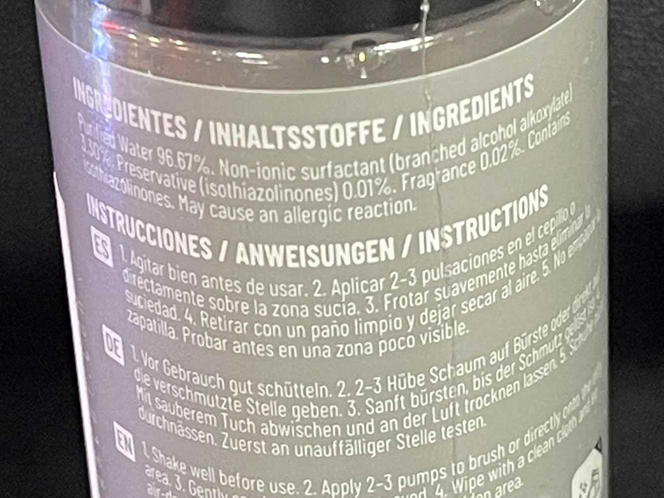 He probado este limpiador de zapatillas en espuma y la experiencia ha sido bastante positiva. El formato con dosificador es cómodo y permite aplicar la cantidad justa sin desperdiciar producto.La espuma se extiende bien y facilita la limpieza, especialmente en zonas de tela y goma. En mis zapatillas ha eliminado suciedad diaria y manchas superficiales sin necesidad de usar agua directamente, lo cual es muy práctico. Además, el secado es rápido y no deja residuos visibles.El olor es suave y no resulta molesto. Tras varias limpiezas, el envase sigue funcionando correctamente y el producto rinde bastante.No hace milagros con manchas muy antiguas o incrustadas, pero para mantenimiento y limpieza habitual cumple perfectamente. En general, es un producto recomendable para quien quiera mantener sus zapatillas limpias sin complicaciones.