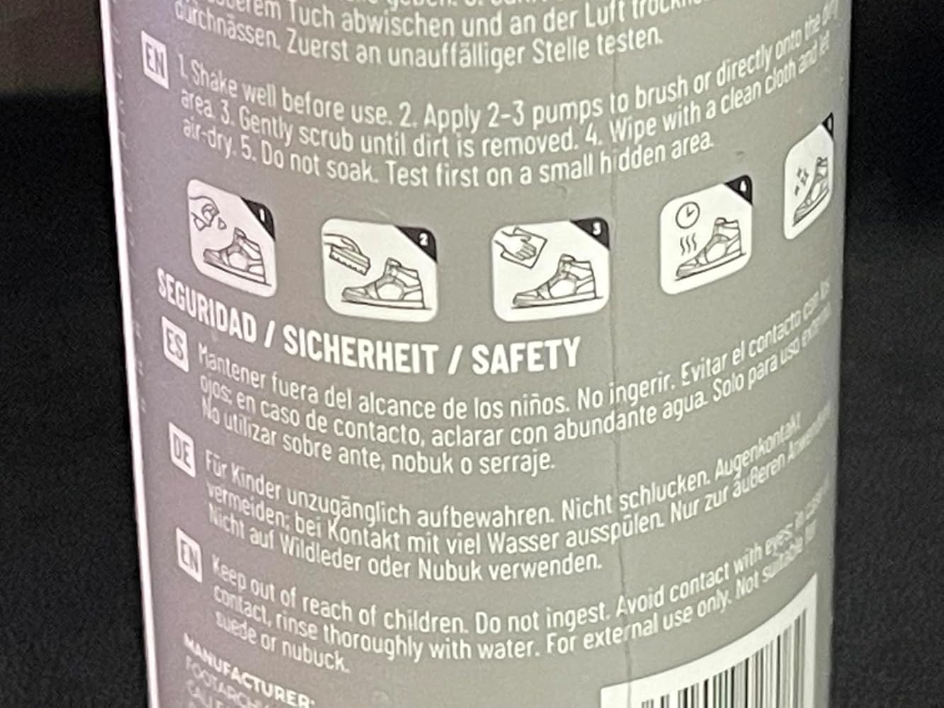 He probado varios limpiadores, pero este de Footarchy me ha sorprendido por su eficacia y rapidez. Mis zapatillas han quedado como nuevas con muy poco esfuerzo. Lo que más destacaría es:Eficacia de la espuma: La textura en espuma es ideal porque no empapa demasiado el material, lo que permite una limpieza profunda sin dañar las zapatillas. Elimina manchas difíciles y el roce diario de maravilla.Formato práctico: Los 150ml cunden muchísimo. Con una pequeña cantidad de espuma tienes suficiente para limpiar un par completo, así que el bote dura bastante. Versatilidad: Lo he usado en diferentes materiales y el resultado ha sido impecable en todos ellos, respetando los colores y las texturas originales.Olor agradable: Deja un aroma a limpio muy suave que se agradece mucho, nada de olores químicos fuertes.Transporte y Envío:Como siempre con Amazon, el transporte ha sido perfecto. El paquete llegó rapidísimo y el bote venía muy bien precintado para evitar cualquier fuga de producto durante el trayecto. Todo llegó en excelente estado.